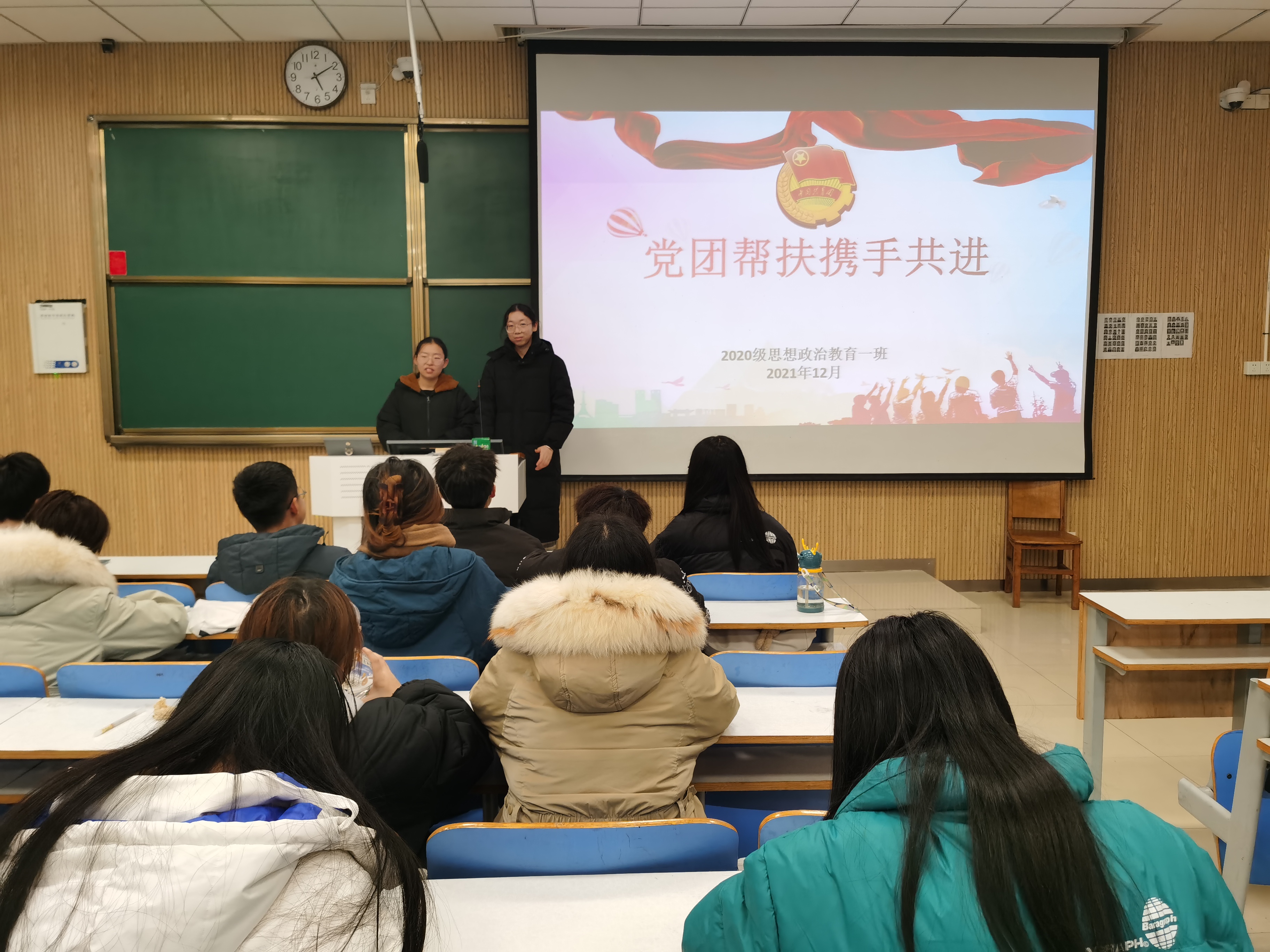 12月8日下午,77779193永利官网2020级思想政治教育一班在社科楼515教室顺利开展党团帮扶活动。永利官网正式党员王涵、预备党员卞晓莹与2020级思想政治教育一班全体同学参加了本次活动。