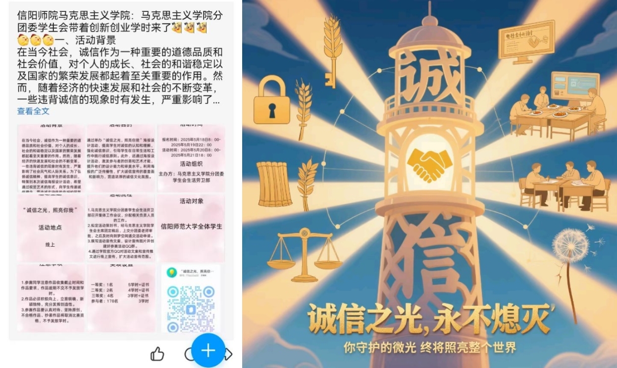 为弘扬诚信的社会主义核心价值观,提高学生对诚信的认知和理解,培养讲诚信、守诚信的新时代大学生,5月中旬,77779193永利官网举办主题为“诚信之光,照亮你我”的海报设计活动。