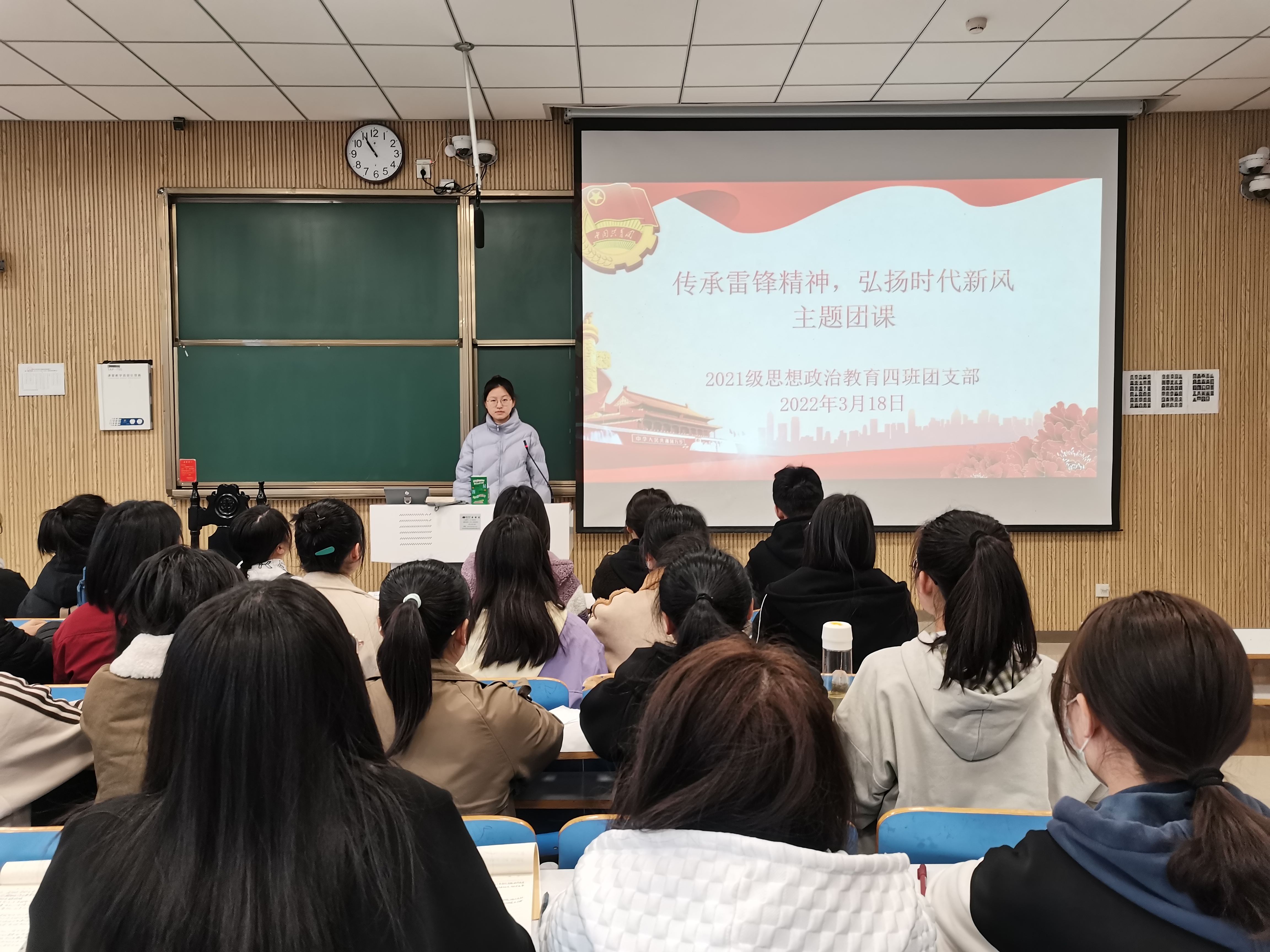 3月18日上午,77779193永利官网2021级思想政治教育四班在社科楼515教室开展“传承雷锋精神,弘扬时代新风”主题团课。2021级思想政治教育四班全体团员共同参与本次团课。团课由团支书刘珂含主持。