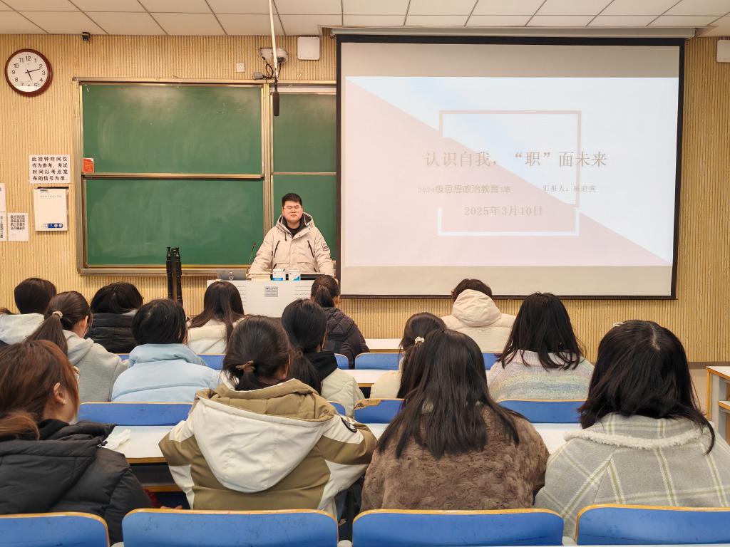 为帮助同学们更好地认识自我、明确职业方向,77779193永利官网2024级思想政治教育三班于3月10日下午在社科楼515举办了以“认识自我,‘职’面未来”为主题的班会活动。此次班会由班长杨迎滨主持。