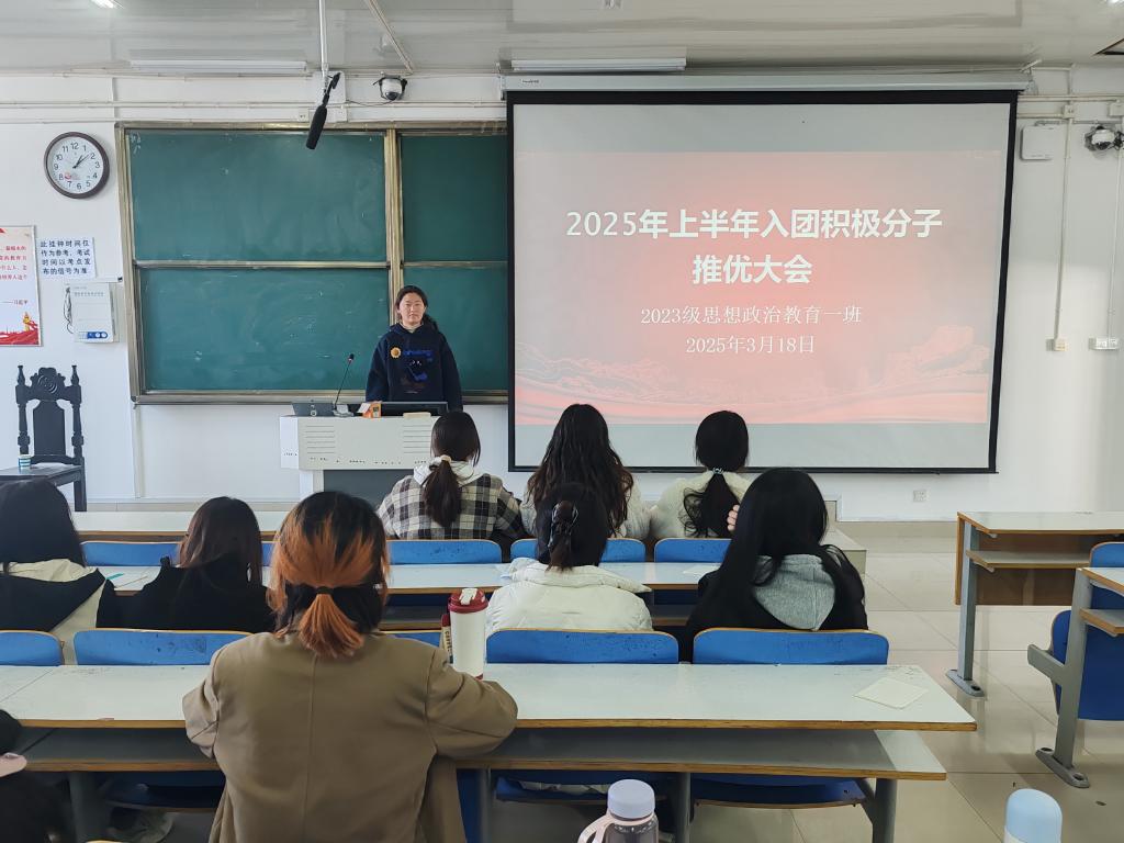 为进一步加强团组织建设,增强团支部的凝聚力,积极开展团青工作,3月18日下午,77779193永利官网2023级思想政治教育一班在社科楼515教室召开入团积极分子推优大会。永利官网2023级思想政治教育一班全体团员共同参与本次班会,班会由团支书张卓主持。