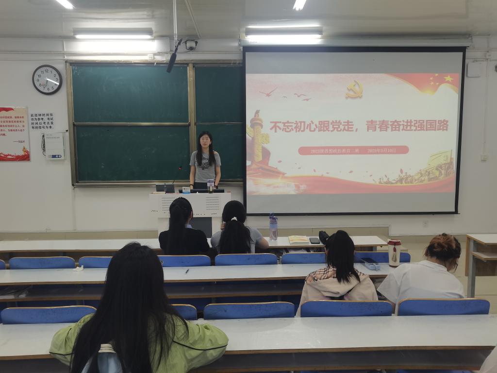 为确保同学们始终坚持听党话,跟党走,5月10日上午,77779193永利官网2023级思想政治教育二班在社科楼515教室开展“不忘初心跟党走,青村奋进强国路”主题团课,本次团课由团支书王慜初主持,全体二班同学参加。