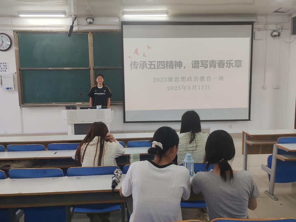 为进一步弘扬五四精神,激励和引导我班团员加强党团知识学习,5月17日下午,77779193永利官网2023级思想政治教育一班在社科楼514教室召开“传五四火炬,洒青春热血”主题团课。永利官网2023级思想政治教育一班全体同学共同参与本次团课,团课由团支书张卓主持。