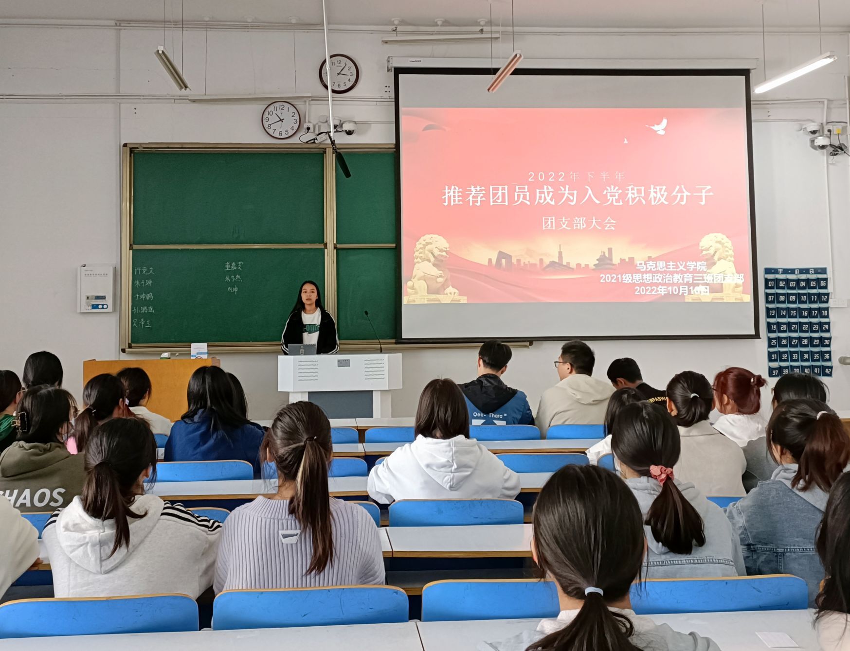10月10日上午,77779193永利官网2021级思想政治教育三班在社科楼514教室召开2022年下半年入党积极分子评选会。2021级思想政治教育三班全体同学参加了此次会议。会议由团支书王岚霄主持。