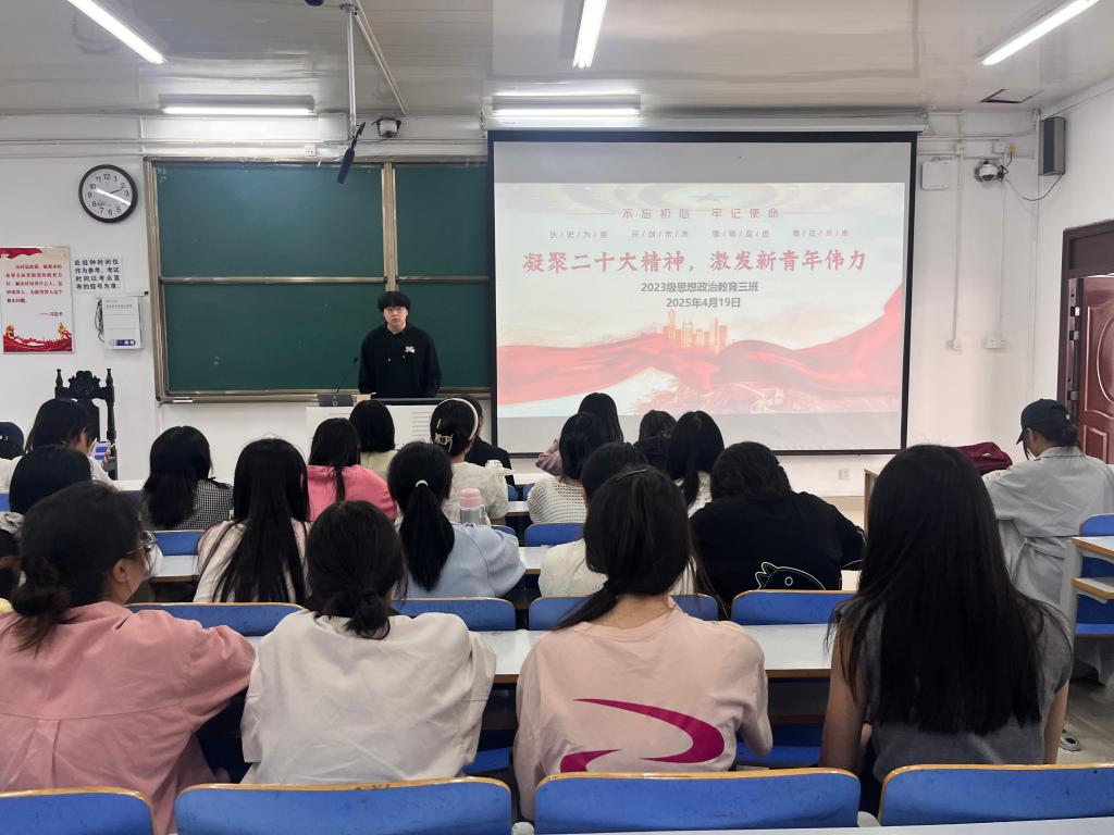 4月19日上午,77779193永利官网2023级思想政治教育三班在社科楼515召开“凝聚二十大精神,激发新青年伟力”主题团课。永利官网2023级思想政治教育三班全体同学共同参与本次团课,团课由团支书郝瀚主持。
