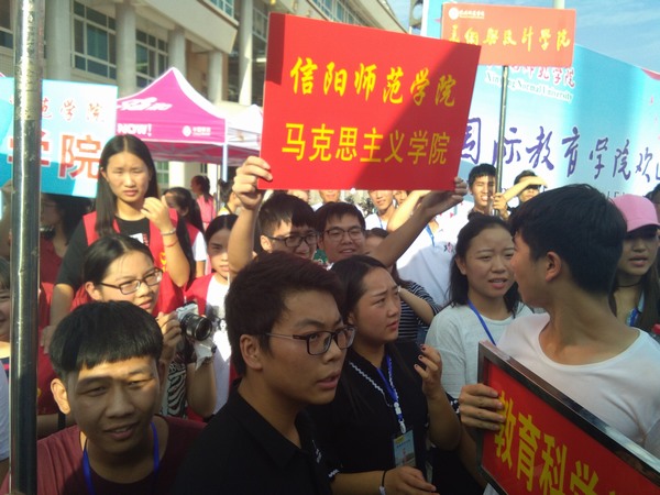 在志愿者岗位上:2015级思想政治教育一班牢固树立“方便他人,快乐自己”的服务理念,鼓励同学们积极报名迎新志愿服务。同学们对此积极响应,纷纷报名。在报名开始后不到半小时的时间内,就收到了22名同学的自荐申请,最终确定秦广凡、秦鑫明、张晗、王欣蕊、侯明这五名同学参加志愿服务。