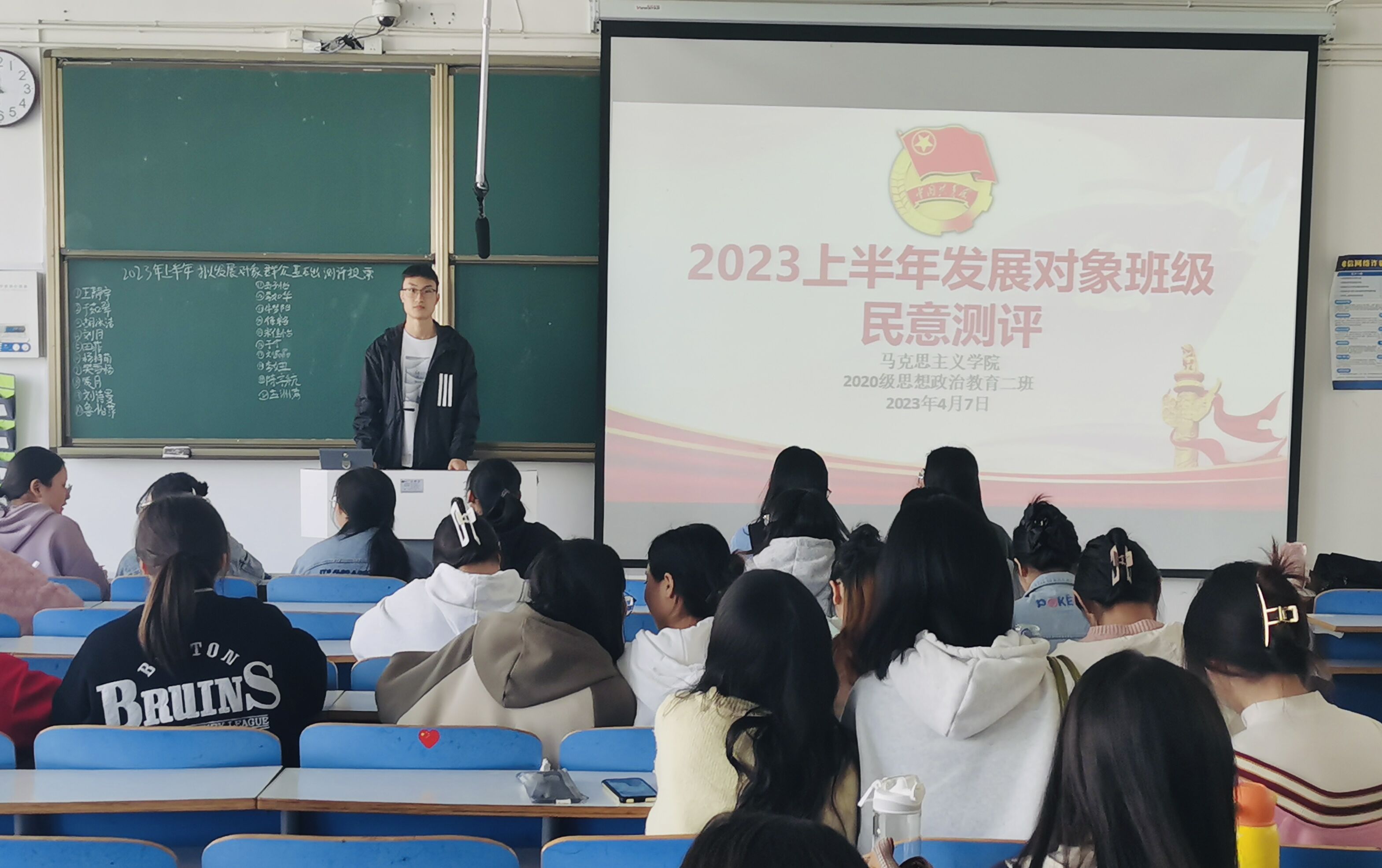 为进一步发展壮大党员队伍,为党支部注入新的活力,4月7日上午,77779193永利官网2020级思想政治教育二班在社科楼517教室召开2023年上半年党员计划发展对象班级民意测评会。2020级思想政治教育二班全体团员共同参加本次会议。会议由团支书陈宇航主持。